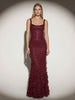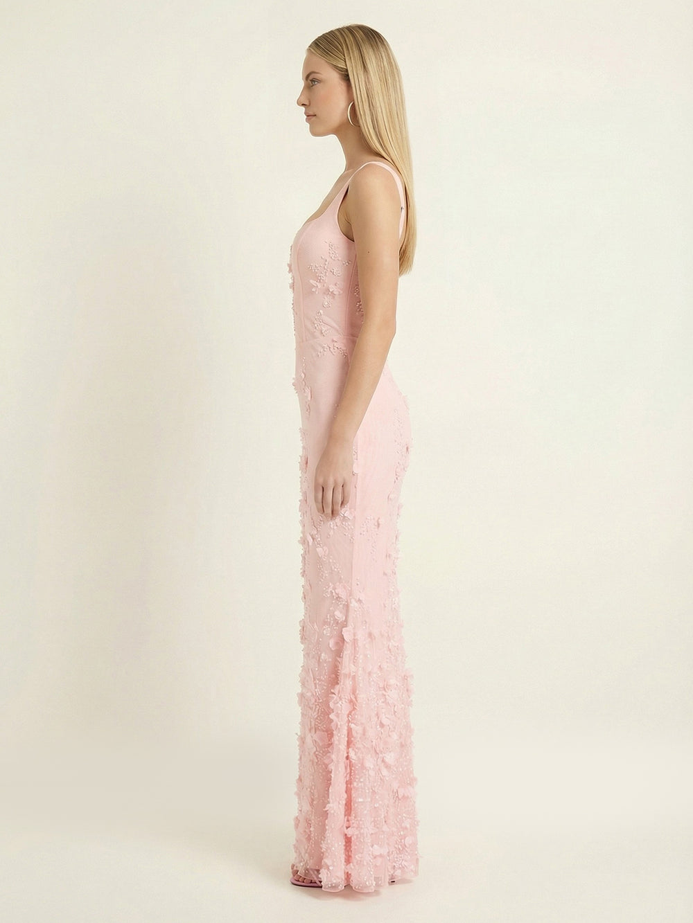 Details: Curved square neckline, adjustable tapered shoulder straps, all-over custom tonal floral appliqués and sequin embellishment, V-shaped back with lace-up detailing, concealed side zip. Crafted from lightweight, semi-sheer premium mesh and lined with signature power mesh.