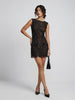 Details:Fully lined, Front seam pockets with bow accent, Plunging V-neckline at back, Lace fabric with contrast trim.