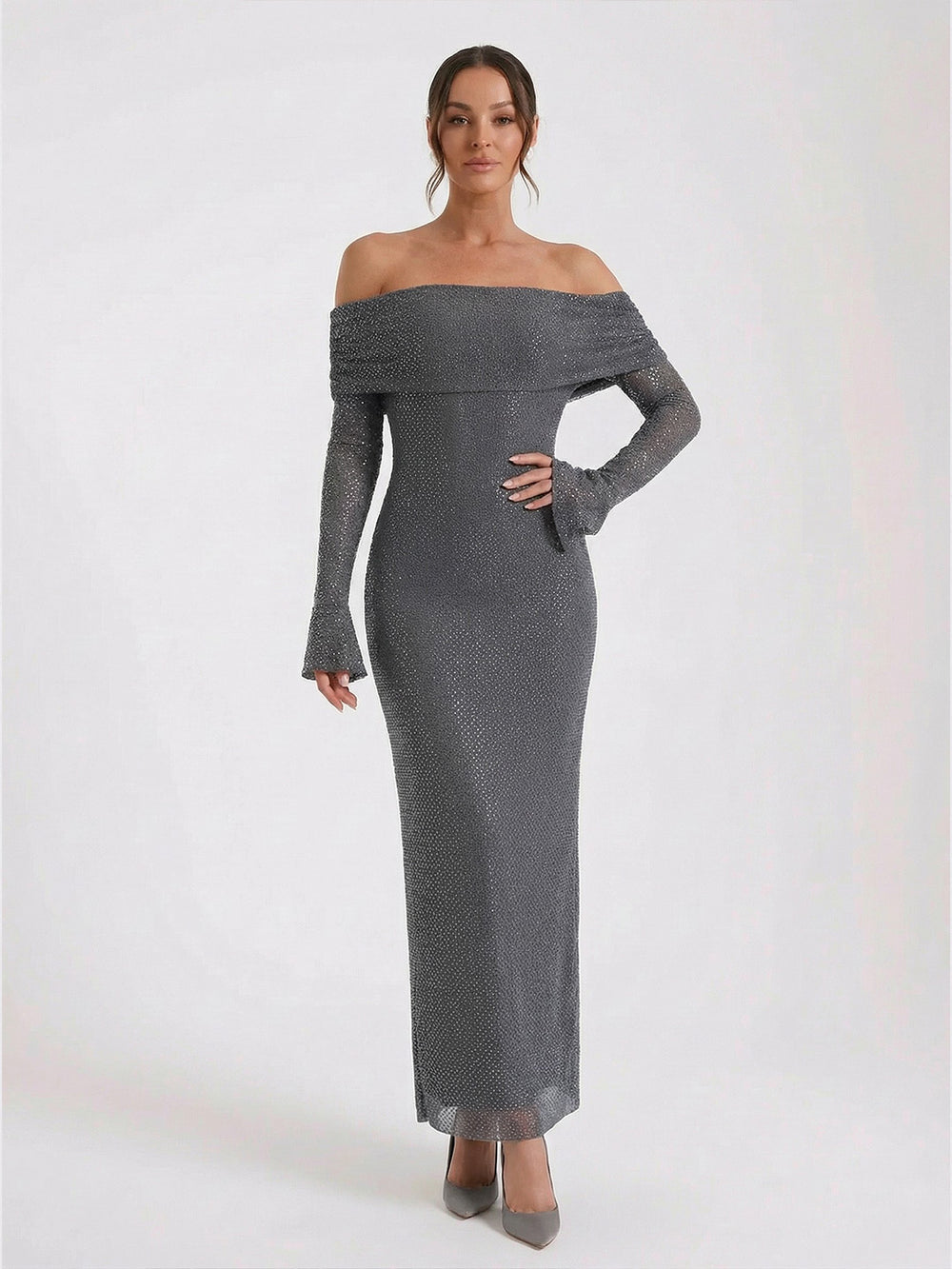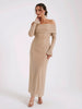 Fit: Off-shoulder, bodycon silhouette