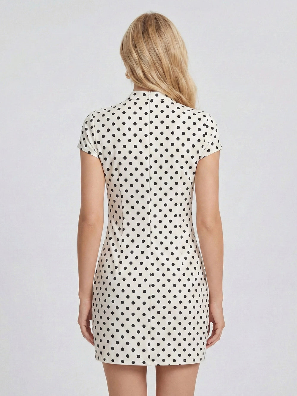 Details: Cut-out halter neckline with self-tie bow, Sleeveless, Fit-and-flare silhouette, Smocked back bodice with integrated cutout detailing, Flounced mini-length hemline.